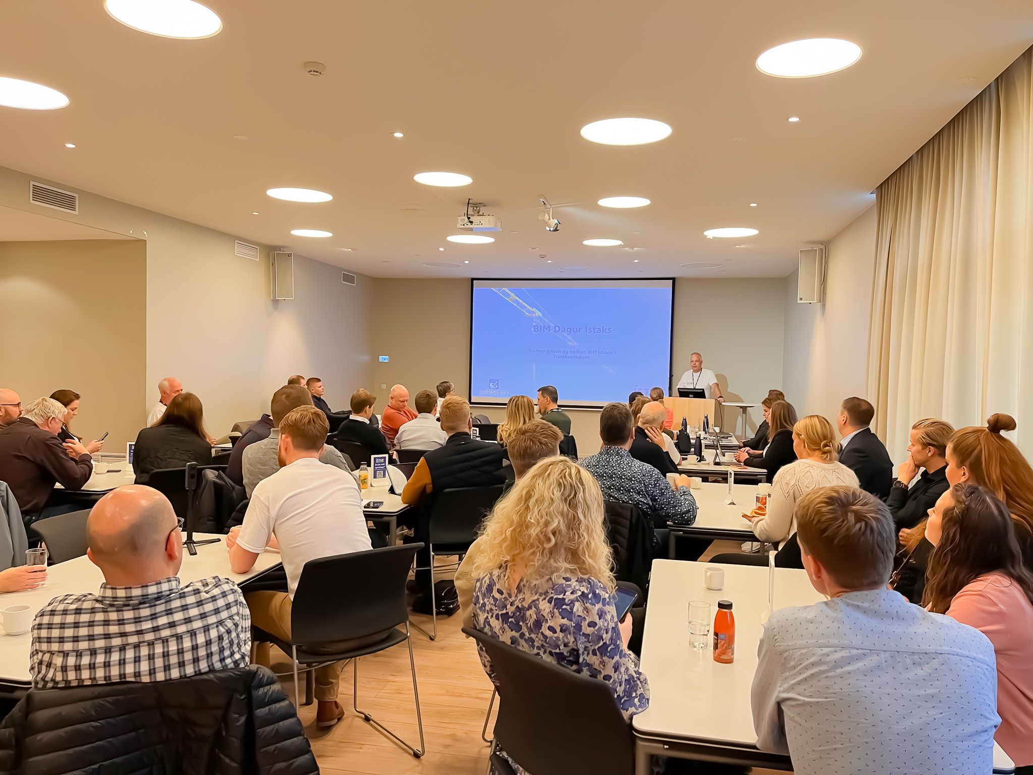 Í síðustu viku fór BIM dagur Ístaks fram í þéttsetnum sal Verkfræðinnar í Reykjavík. Á viðburðinum komu fram aðilar bæði frá BIM deild Ístaks og Per Aarsleff, systurfyrirtæki Ístaks. Þau héldu kynningu á stafrænni þróun og notkun BIM líkana í framkvæmdum, með áherslu á virðissköpun og hagræðingu.