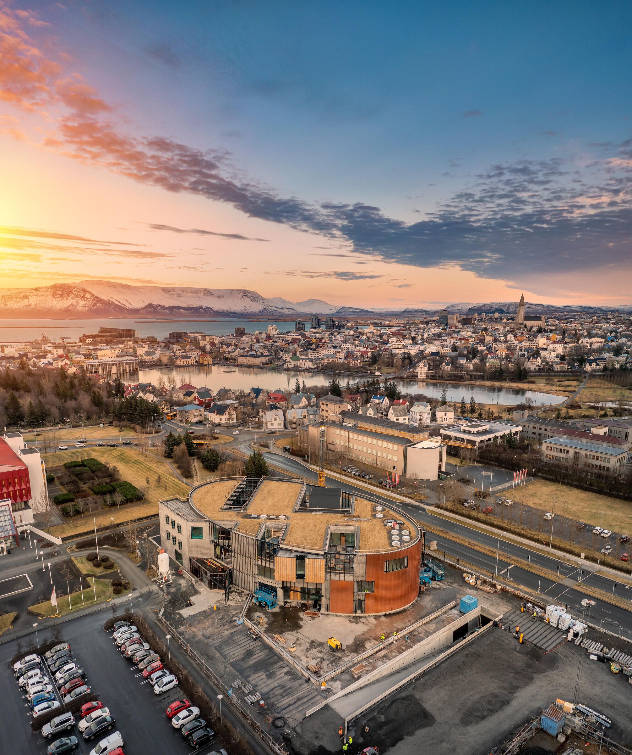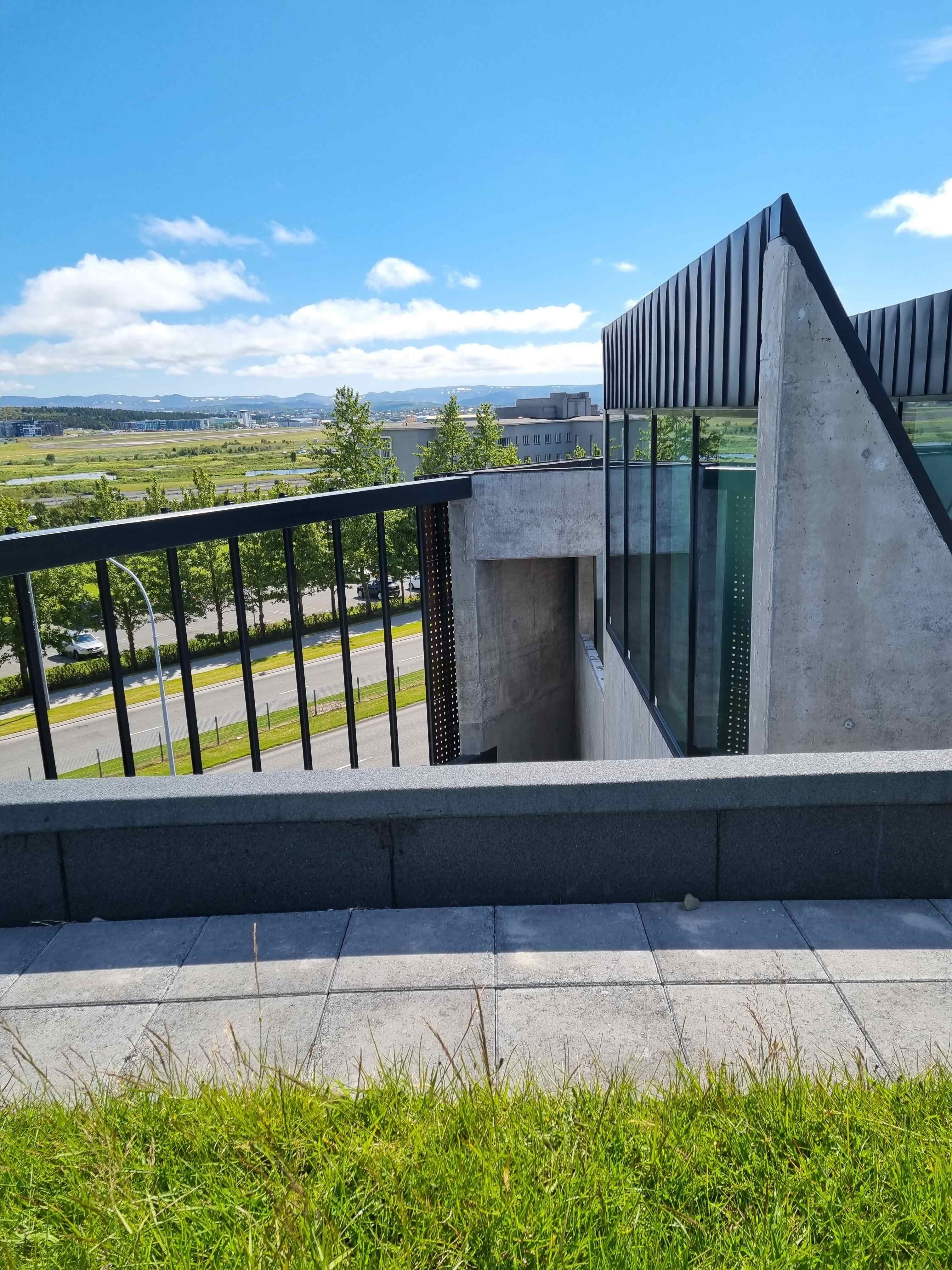 Staðan í dag er sú að búið er að steypa botnplötu tjarnar, unnið er að fyllingu að tjarnarkanti og steypa undir forsteyptar einingar í göngubrú í tjörn. Klæðningar utanhúss eru að klárast, hellulögn, kantsteinar, snjóbræðsla og vinna við þakkanta er í fullum gangi. Uppsetning á svalahandriðum hefst svo bráðlega.
