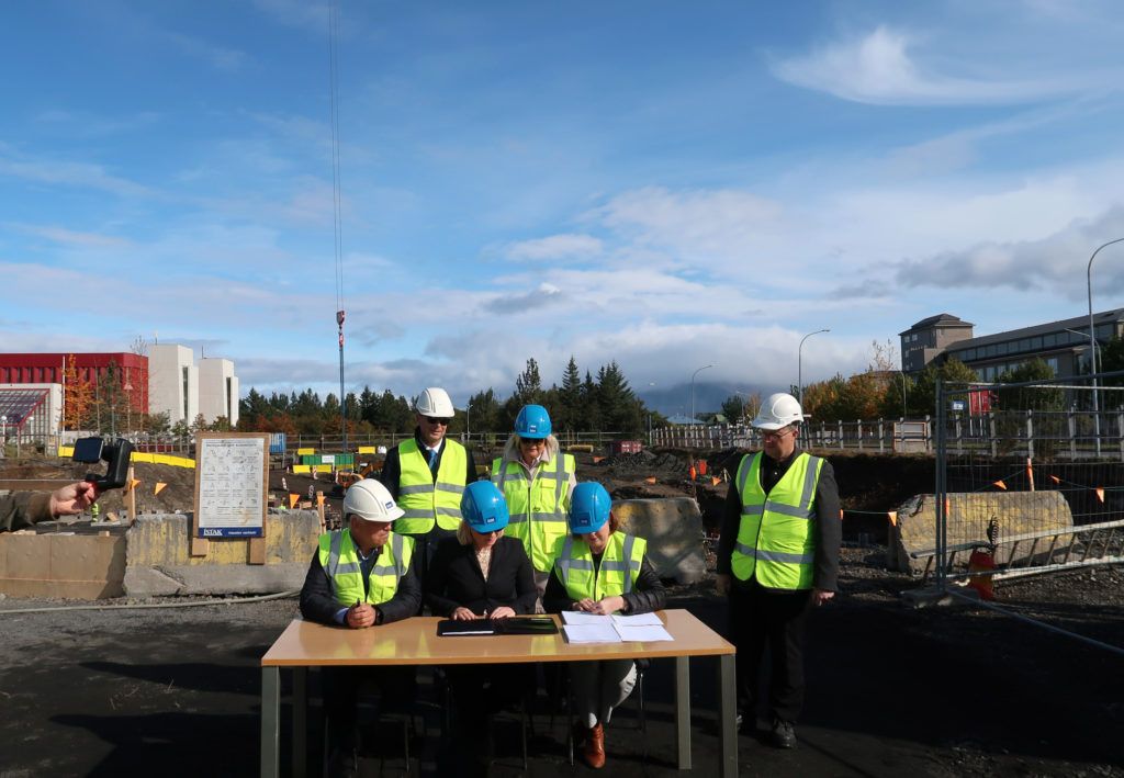 Í dag var undirritaður samningur um byggingu Húss íslenskunnar. Undirritunin fór fram á verkstað og voru það þau Lilja Alfreðsdóttir mennta- og menningarmálaráðherra, Guðrún Ingvarsdóttir, forstjóri Framkvæmdasýslu ríkisins, og Karl Andreassen, framkvæmdastjóri ÍSTAKS, sem undirrituðu samninginn. ÍSTAK hefur nú þegar hafið vinnu á svæðinu og undanfarnar vikur hefur vinna við grunninn verið í fullum gangi.