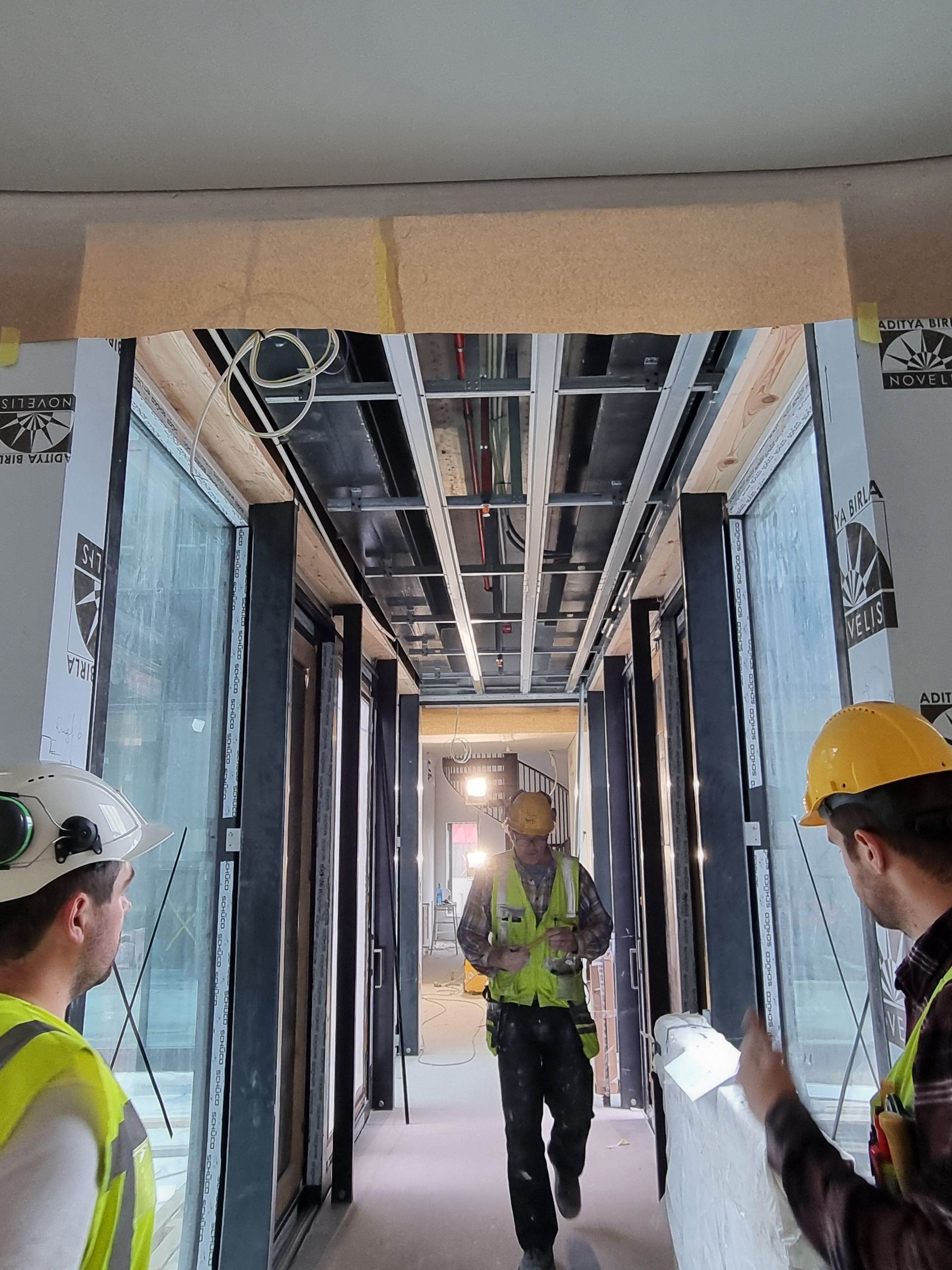 Verið er að innrétta á flestöllum hæðum, málningarvinnan er einnig í gangi, gólfvinna er að klárast á annarri og þriðju hæð. Uppsetning á innréttingum, glerskilrúmum, timburklæðningu og hurðum er á góðri leið. Einnig er verið að vinna í lögnum og rafmagni á öllum hæðum.